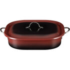 Marry the preparation and presentation stages of your finest casseroles, roasts, and seasoned vegetables with this Bon Chef Country French X 7 qt. ombre merlot French oven with cover 73004-OM-M! Perfect for display cooking in buffets, open-concept kitchens, and catered events, this French oven features a 5-ply construction that increases cooking efficiency by helping with even heating. Not to mention, the uniquely modern, ombre exterior makes for a stunning and eye-catching display at any venue, while the rounded corner design minimizes waste during cooking. Striking the ideal balance between style and function, this French oven can even be used with or without a food pan.