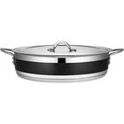 For easy transport between busy commercial kitchens and front-of-house spaces, this item comes with convenient helper handles. The handles are even riveted to the body to provide a secure connection that won't come loose or break over time. This product also includes a matching lid to preserve freshness and retain the heat within the pan. This brazier pot features an induction-ready bottom as well, but it also works great with virtually any other heat source for even cooking done right!