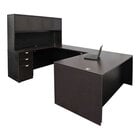 Boss Holland Series 71" Mahogany Laminate Desk Module with Hutch, Bridge, Storage Pedestal, and Credenza