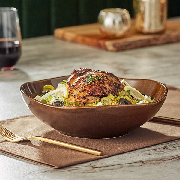 The organic shape of this bowl provides a handmade feel that adds a touch of elegance to your tabletop presentation. Crafted from fully vitrified china, this bowl is durable and long-lasting, making it perfect for daily use in your restaurant. Whether you're serving salads or pasta, this bowl is the ideal vessel to elevate your culinary creations.