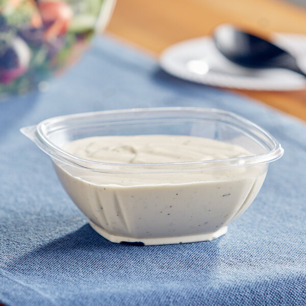 Pair this bowl with a lid (sold separately) to either send food home with guests or restock grab-and-go buffets with product. The quick-release tab makes removing the lid a simple, no-hassle experience. With a 16 oz. capacity, you'll be able to store cold sides like dressings, dips, or condiments. It is only recommended to use this bowl with cold food.