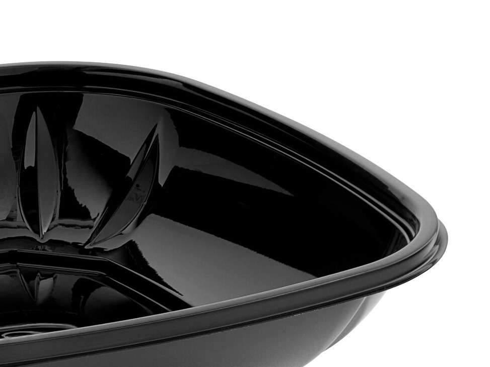 This bowl is made with sturdy PET construction. The black coating provides an upscale look that blends into nearly any occasion.
