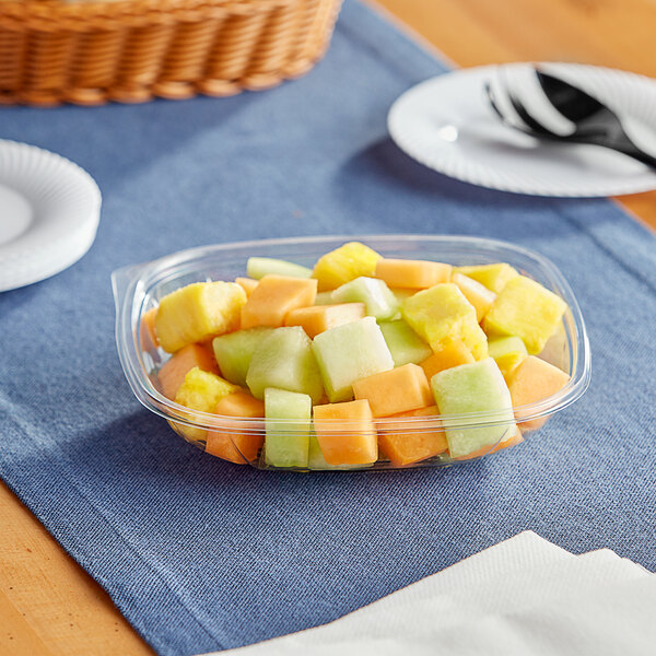 This bowl is made with sturdy PET construction. With a clear design, guests will be able to see the contents in the bowl from all angles.