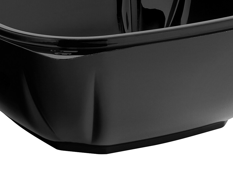 This bowl is made with sturdy PET construction. The black coating provides an upscale look and is sure to blend into nearly any occasion.