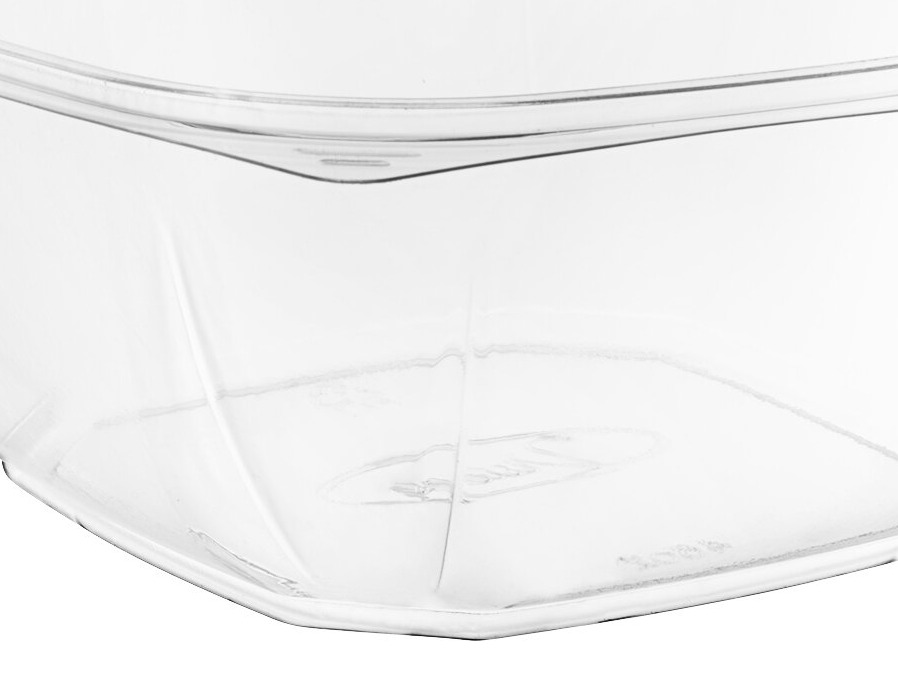 This bowl is made with sturdy PET construction. With a clear design, guests will be able to see the contents of the bowl from all angles.