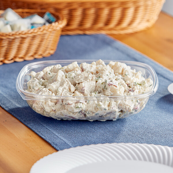 Pair this bowl with a lid (sold separately) to either send food home with guests or restock grab-and-go buffets with product. The quick-release tab makes removing the lid a simple, no-hassle experience. With a 48 oz. capacity, you'll be able to store cold foods like salads, sides, or pastas. It is only recommended to use this bowl with cold food.