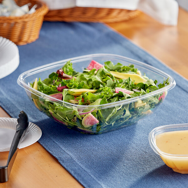 This bowl is made with sturdy PET construction. With a clear design, guests will be able to see the contents of the bowl from all angles.
