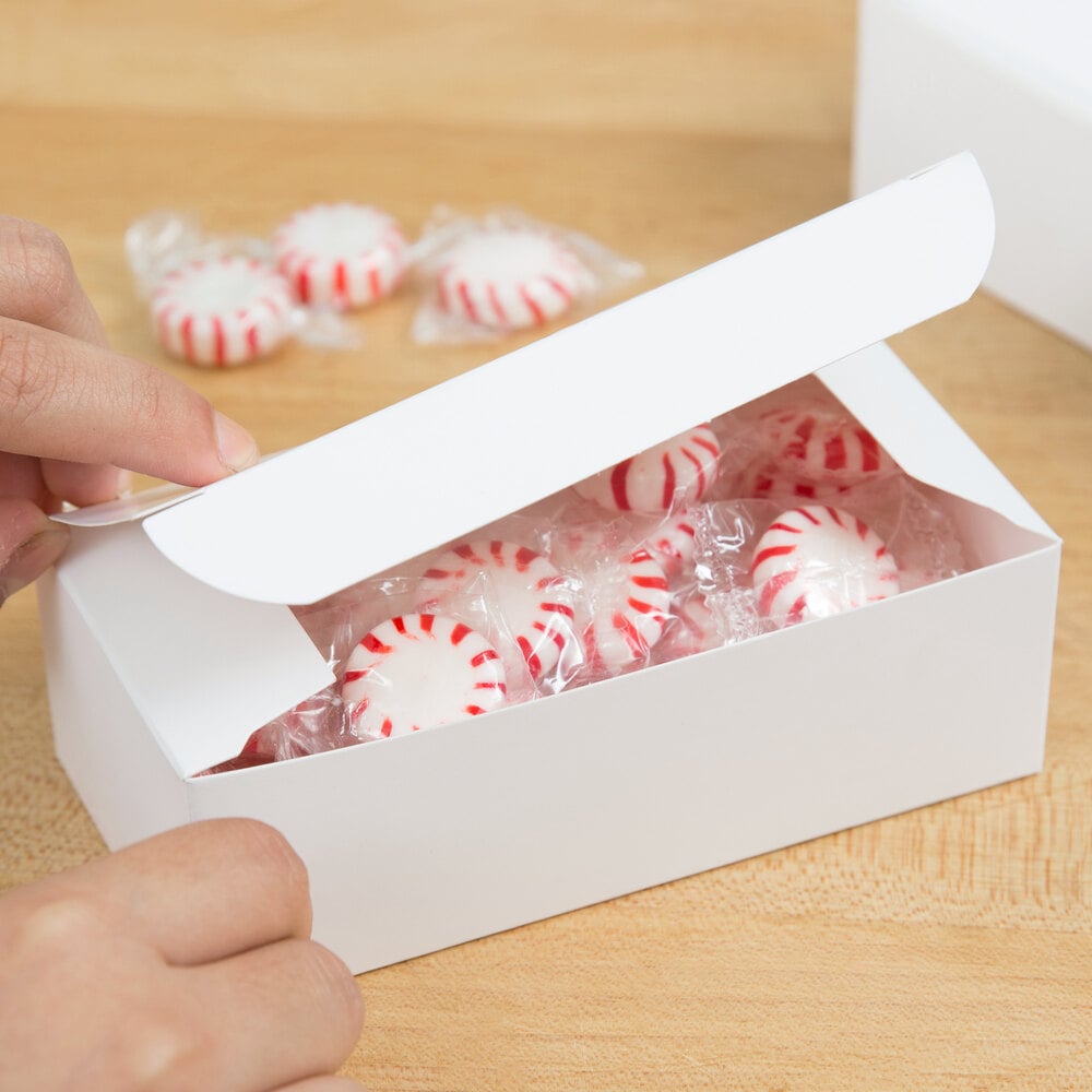 Your business can use this box to package fudge, taffy, cookies, candies, and mints. The 1/2 lb. size leaves you ample space to fill it with wrapped candies, fudge, or even small baked goods.