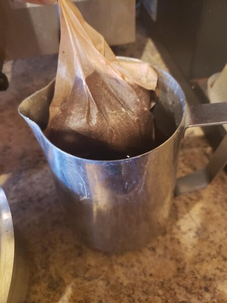 Tasty! You can actually get 2 gallons out of one filter bag using the coffee maker method. Recipe: Your gonna make 4 full pots, the first two are the strongest, so put one in each gallon pitcher first, add sugar and stir, add the remaining pots and ice, your done - enjoy a glass.