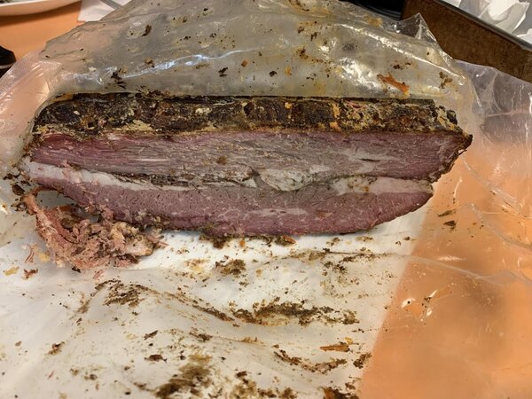 This is b y far the best BBQ Brisket I have had in a very long time. It did arrive as described and cuts very nice on a slicer. Great tast and value.