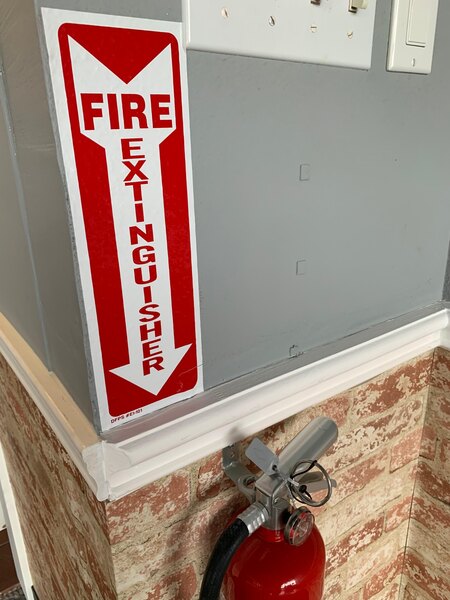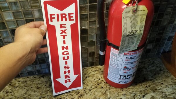 This bright red and white sign is a great way to inform our employees and customers alike to the location of the fire extinguishers. We have them placed every where we have the extinguishers placed.