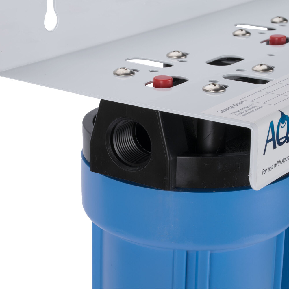 Whether you are using floor steam equipment, ice makers, or beverage dispensers, this C Pure AQUAKING22 20" dual cartridge water filtration system is the solution you're looking for! The system's two 20" blue housings have a convenient pressure relief button and safely hold the 20" sediment and 20" anti-scaling phosphate drop in cartridges.