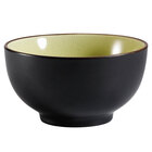 Your Asian-inspired restaurant or catered event won't be complete without this CAC 666-4-BLU Japanese style 4 3/4" rice bowl. Its simple bowl shape rests atop a solid base and features a black non-glare glaze exterior with a lake water blue interior. This Japanese style rice bowl is ideal for serving rice, vegetables, soups, or desserts.