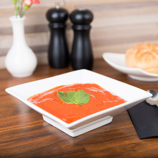 Featuring the crisp appeal of traditional porcelain, these CAC CTY-37 Citysquare 20 oz. square bowls are ideal for salad, French fries, or soup! Their simplistic elegance and sparkling finish will leave the lasting impression that you need to establish your products as a level above all the rest. Versatile enough for use in ethnic restaurants, cafes, and at catered events, you can't go wrong with these square bowls.