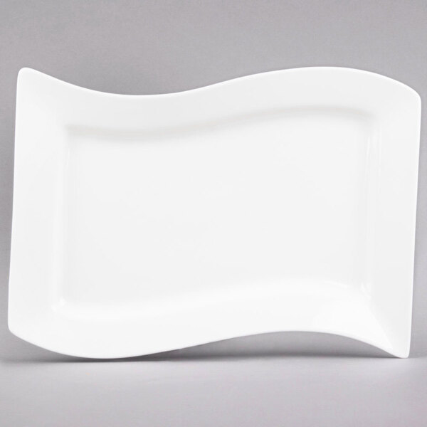 Create a trendy tablescape with the help of this CAC MIA-12 Miami 10 1/2" x 6 3/4" rectangular platter. Great for hotels, banquet halls, and catered events, use this piece to serve your signature appetizers and entrees! Featuring a sleek, lightweight design and a raised rim with a contemporary, wavy edge, the platter's shape and bone white color help foods pop for a more enticing presentation. Wherever and whatever you decide to use it for, it's sure to leave a lasting impression of quality and elegance on your guests.