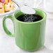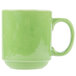 Save space without sacrificing style with this CAC PRM-12-G 12 oz. Venice stacking mug! This mug's vibrant green finish makes it the ideal addition to trendy cafes, coffee shops, diners, and restaurants looking to add a pop of color to their piping hot beverage service! It's great for serving hot coffee, tea, or hot chocolate, but when not in use, this mug stacks easily with similarly-styled mugs. Use it for everyday occasions or reserve it for colorful catered events. Its sturdy handle ensures safe service.