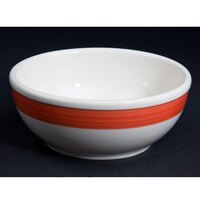 Enhance the visual interest of your culinary masterpieces with this CAC R-16 RED red 10 1/2" dinner plate. Perfect for serving guests appetizers, entrees, and specialty salads, this plate is a versatile addition to your establishment. It features a classic round shape and a rolled edge to add a simple elegance to your table settings, and to make sure your food does not spill off the sides. Plus, the rim's bold red color provides contrast to your foods, helping to draw customers' eyes towards the center of the plate.