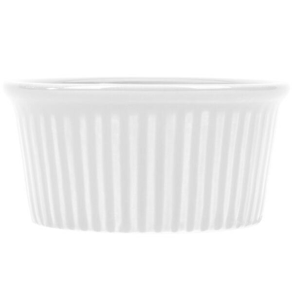 These CAC RKF-6 super white Festiware 6 oz. china fluted ramekins come in a variety of different colors to give your table setting a unique style that will help set your restaurant apart from the rest! Your butter, salsa, and dressing will never look better than when it is served in these festive ramekins. They are perfect for your diner, ethnic restaurant, or other food service operation.