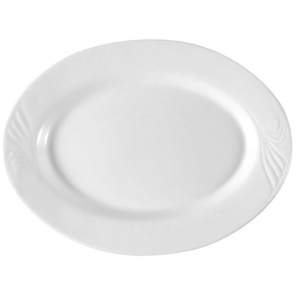 CAC RSV-34 Roosevelt 9 1/4" x 7" Super White Oval Porcelain Platter - 24/Case