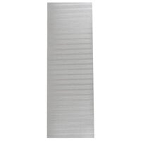 This gray floor mat's ribbed surface comes with rounded edges so water, grease, and other liquids do not pool on the mat and cause slipping hazards. Because it is 5/8" thick, this mat is extremely comfortable to stand on for hours at a time, while its dark color doesn't show dirt like standard red mats. However, when the mat does become dirty, it is lightweight and easy to clean.