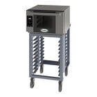 Ensure consistent results and reliable efficiency with these Cadco Bakerlux Station double stacked 3-shelf half size heavy-duty digital countertop convection ovens with GO control panels and heavy-duty aluminum stand. These 2 half size ovens include 3 wire shelves per oven with 2 5/8" between each shelf for baking a variety of foods, making them the perfect addition to your bakery, restaurant, or catering service. Featuring intuitive GO control panels, these units are easy to operate. They can hold up to 99 programs and they include 12 quick access programs for increased convenience. Better yet, they come with a heavy-duty aluminum stand that is equipped with casters, allowing you to easily roll these ovens to different stations throughout your kitchen.