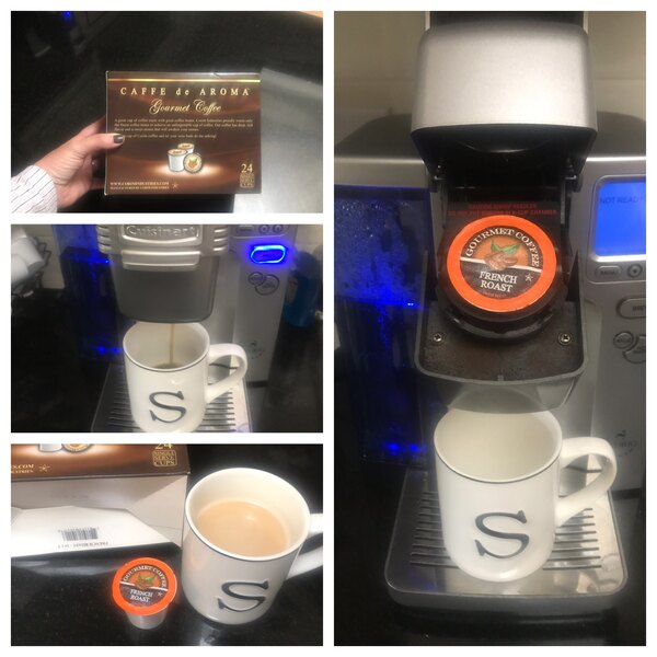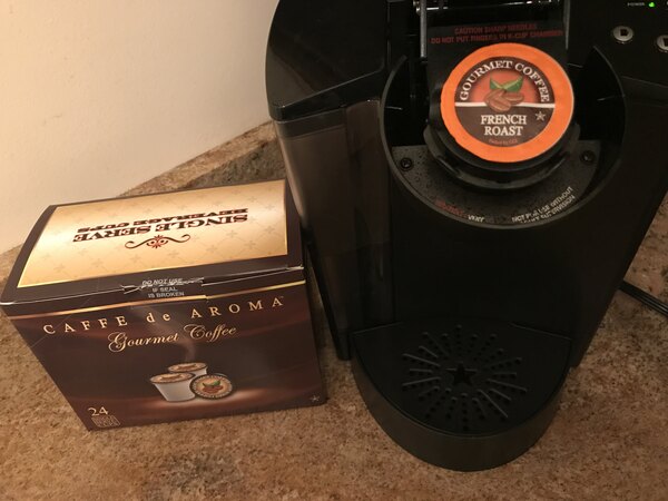 great taste compatible with my keurig k-cup this Caffe de Aroma French Roast Coffee Single Serve Cups - 24 / Box just first to try this and well ok for me but i wish a little more stronger then