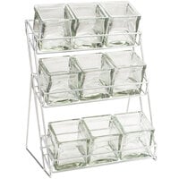 Need to add some professional pizzazz to your catering bar, use this iron black six ring cylinder display with a revolving base for your customers to retrieve forks, straws and knives