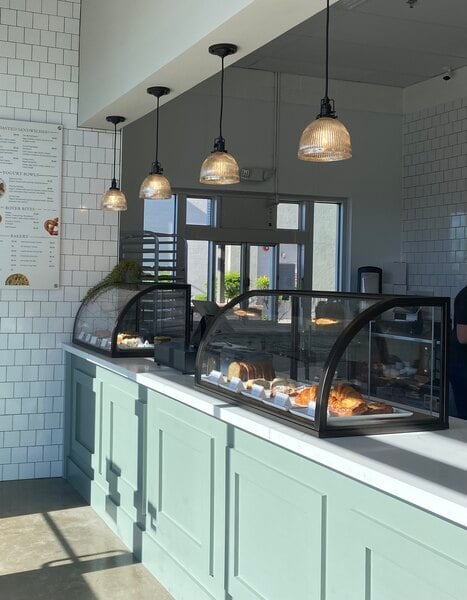 Perfect for your coffee shop or bakery, this arched case adds height to countertop displays and presents your foods in an organized and professional way. The clear acrylic panels on all sides provide excellent visibility of your baked goods to boost impulse sales. The metal frame paired with the wood base gives this display a unique look that suits any vintage or rustic-themed setting.