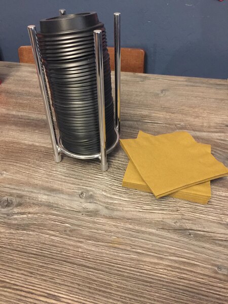 great for keeping our lids of bar surfaces. No longer cleaning up messes of. knocked over coffee lids. Easy for our guests to use and it looks great!