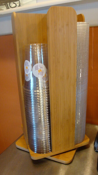 Customers used to ask me "Why do I have to walk all the way across the store to get a cup, and then all the way back to get a lid? It's mayhem!" Well not anymore. Now my customers can have a one-stop hub for their drinking needs.