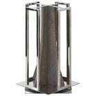 Keep cups and lids stacked in this trendy and functional Cal-Mil 3803-83 Ashwood revolving lid and cup organizer! Its square base is divided into four vertical sections, ideal for holding cups or lids with diameters up to 3 3/4". For added convenience, this unit rests atop a revolving base, providing easier access from all sides. The durable gray-stained oak wood and metal construction provides long-lasting use while adding a modern rustic look to your coffee shop, cafe, or hotel decor. It's also great for vintage-inspired or rustic-themed receptions and events.