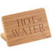 In addition, the free-standing design will make set up and cleanup practically effortless for your staff. This 3" x 2" bamboo beverage sign takes up minimal countertop space which allows room for coffee supplies and any additional beverage signs. So set the scene and keep patrons from guessing what's what with this rustic bamboo "hot water" beverage sign.