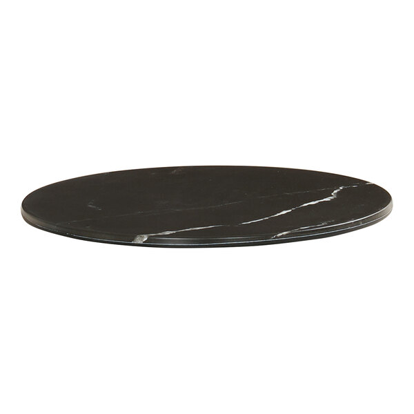 The elegant black marbled finish provides a stunning backdrop for everything from pastries to hors d'oeuvres and artisanal cheeses. It is ideal for both serving and display purposes. Pair this tray with a Cal-Mil Logan stand (sold separately) to effortlessly elevate your offerings. This round melamine tray is a stylish yet practical addition to your establishment.