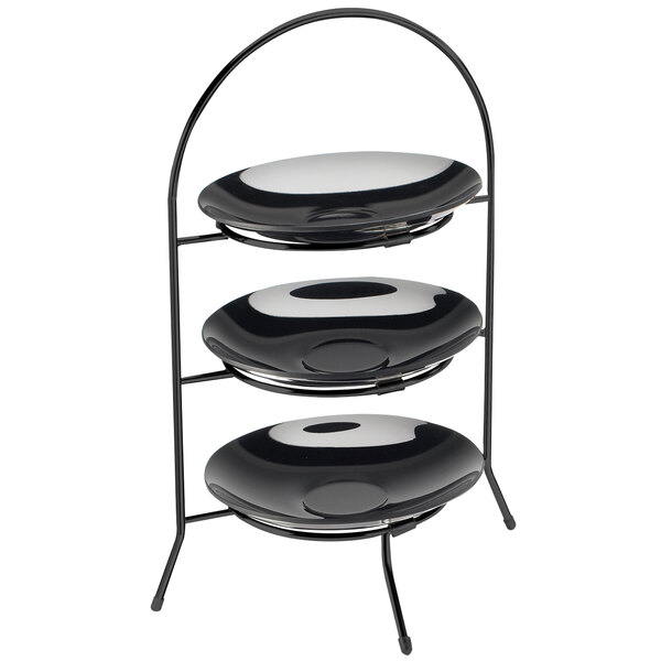 Display baked goods and fruit, or serve your most mouthwatering appetizers with this Cal-Mil 977-10-13 Iron black wire bowl and plate display. This sleek steel display is made to look and feel like wrought iron for excellent durability and a rustic charm. It's perfect for restaurants, catered events, parties, buffets, and more. Use this versatile display to show off freshly baked rolls and pastries, or display signature desserts. This stand has clean lines and a solid black coloring that are sure to complement any decor, and its rubber feet help keep your displays in place while protecting your counters from scuffs!