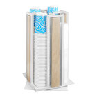 Keep cups and lids stacked in this trendy and functional Cal-Mil Blonde 9 1/4" x 9 1/4" x 18" maple wood / white metal 4-section revolving countertop cup / lid organizer! Its square base is divided into four vertical sections, ideal for holding cups or lids with diameters up to 3 3/4". For added convenience, this unit rests atop a revolving base, providing easier access from all sides. The durable wood and metal construction provides long-lasting use while adding a modern rustic look to your coffee shop, cafe, or hotel decor.