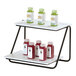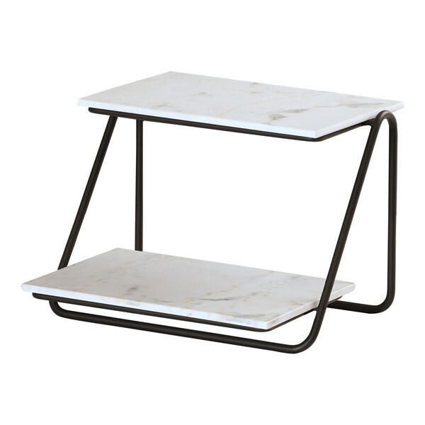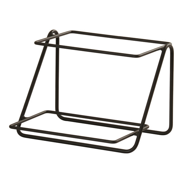 Enhance the presentation of your culinary creations or merchandise with this Cal-Mil Logan black wire 2-tier angled merchandiser. This merchandiser features a contemporary round-wire design that adds visual appeal to your offerings. The 2-tier design maximizes vertical storage, reducing the amount of counter space required. The angled profile makes it easy to view and access items on each tier.