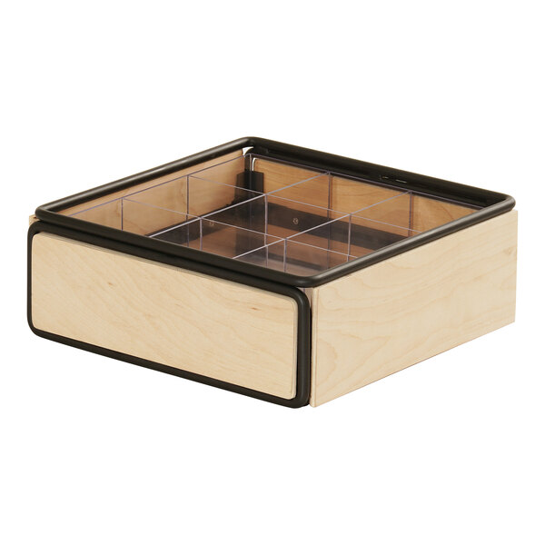 Cal-Mil Logan 12" x 12" x 4 3/4" 9-Section Square Black Wire and Birch Wood Condiment Organizer