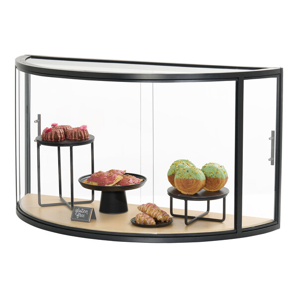 Provide a modern presentation for your treats with this Cal-Mil Logan bakery display case! This case features a sleek black frame with a minimalist aesthetic that is sure to add a contemporary flair to your decor. The arched front creates visual interest, transforming the case and its contents into a statement piece. With its clear acrylic panels, this display case offers excellent visibility of your baked goods, products, and merchandise from all angles.