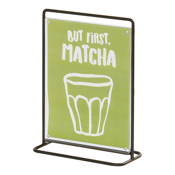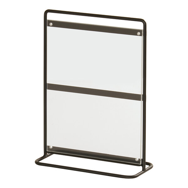 Enhance your restaurant or retail space with this Cal-Mil Logan 8 1/2" x 11" black wire sign holder. This sleek and modern card holder is designed to fit 8 1/2" x 11" signs, making it perfect for displaying your dinner specials, drink specials, or upcoming events. The contemporary black round-wire design adds a touch of sophistication to any setting, creating an eye-catching display that will draw attention and impress your guests.