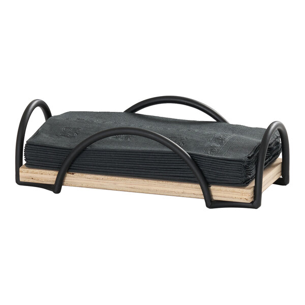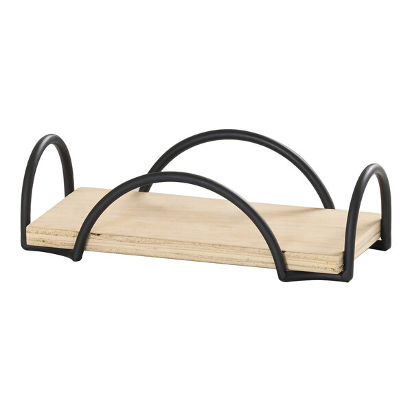 Bring a sleek style to your establishment with this Cal-Mil Logan napkin holder! It provides a stylish presentation that is perfect for hotels, cafes, coffee shops, or take-out operations. This holder not only looks beautiful but is also functional, making it an excellent addition to your tabletops or self-service stations. It features playful black wire loops paired with a durable birch wood base.