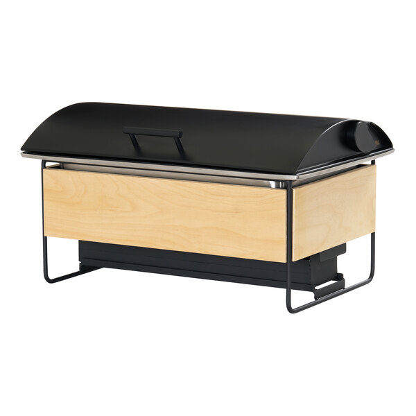 Cal-Mil Logan 8 Qt. Natural Birch Wood and Black Wire Chafer with Soft-Close Lid 25225-93