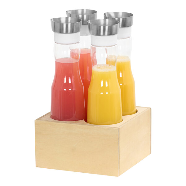 Keep your beverages perfectly chilled and beautifully organized with this Cal-Mil Logan carafe cooler. Made from durable birch wood, the cooler features a natural wood color that brings a clean, minimalistic aesthetic to any serving station. It is thoughtfully designed for both indoor and outdoor service, ensuring your presentation remains polished regardless of the venue.