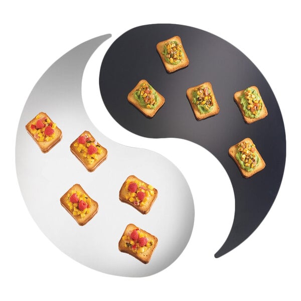 Create dazzling displays and centerpieces for your buffet, hotel, or catered event with this Cal-Mil PT245 Yin Yang 2-piece mirror set! It's great for serving up appetizers and desserts, or use it for displays of fresh fruit and vegetable. Its intriguing Yin Yang design and sparkling mirror finish are sure to have your guests buzzing. Add flickering candles, voluptuous floral bouquets, traditional table numbers, and other fanciful decorations for unforgettable presentations your patrons will adore. These two interlocking mirror trays fit perfectly together to form the classic Yin Yang symbol, and thanks to the durable acrylic construction, this set will last through numerous meal services!