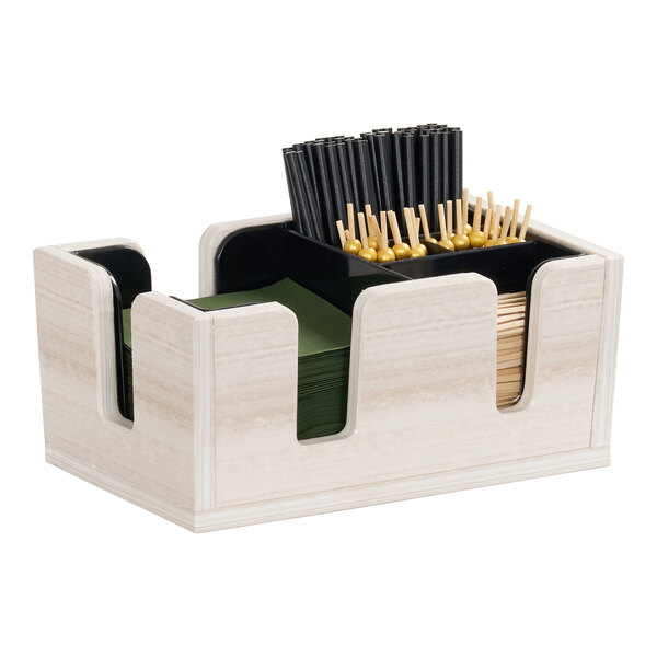 Provide your employees and guests with easy access to popular drink accessories with this Cal-Mil Vista coastal bar organizer / caddy. Its 3-section plastic divider allows for quick organization of straws, stirrers, napkins, toothpicks, and other bar essentials. When not in use, the divider can be removed and easily cleaned with soap and water.