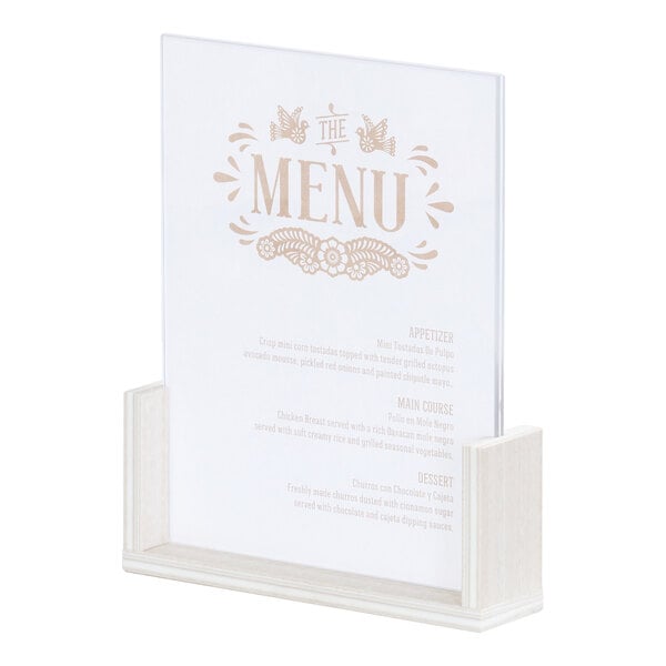 Enhance your restaurant or retail space with this Cal-Mil Vista coastal U-frame sign holder. Its light coastal finish adds warmth to any setting and is designed to accommodate 8 1/2" x 11" signs, making it perfect for showcasing dinner specials, drink specials, or upcoming events. Made from durable, water-resistant HDPE, this sign holder is built to withstand frequent use, spills, and cleaning in busy environments. It is perfect for buffets, receptions, and catered events.