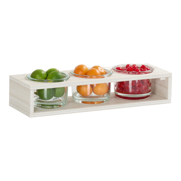 Fill the jars with items like garnishes and condiments to give your bar or self-service station. This set comes complete with 3 glass jars and a jar display stand. The removable jars make the entire display easy to refill and clean. You can even fill this display with coffee creamers or sugar sticks for your busy coffee shop service. Keep all of your ingredients separate and organized for a clean and professional look with this jar display!