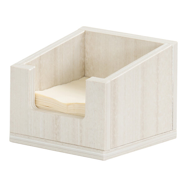 Designed to hold standard cocktail-size napkins (sold separately), this holder keeps napkins orderly and contained. The raised back is ideal for storing the holder against a wall. Whether used at a bar or a self-service beverage station, the coastal finish provides a light, versatile look that complements any modern or rustic decor.