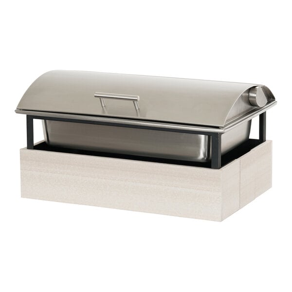 Made from water-resistant HDPE material, this unit is built to withstand the elements while maintaining its professional appearance. Its contemporary design and light coastal finish make it an ideal choice for any upscale event. Perfect for buffets and catered events, this stylish chafer combines functionality with a contemporary aesthetic to elevate your food display.