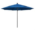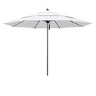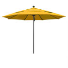 Keep your decks, outdoor dining areas, or pool-side patios shaded with this California Umbrella ALTO 118 PACIFICA Venture 11' round pulley lift umbrella with 1 1/2" black aluminum pole and Pacifica canopy. An essential addition to commercial environments, the Venture series offers umbrellas that are created with superior materials and exude a classic, sophisticated appearance. This umbrella features a 1 1/2" thick, black aluminum pole with sleek, stainless steel hardware for a robust foundation. Its heavy-duty fiberglass ribs bend with the wind without snapping or breaking, yet provide excellent support for the canopy. In addition, the double wind vent allows for excellent air flow to ensure stability and prevent the umbrella from moving with strong wind gusts. The Pacifica fabric is water-resistant but not water-proof and is not intended for use in wet conditions. During inclement weather, please store umbrellas in a dry location or cover with a protective umbrella cover sold separately.