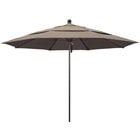 Keep your decks, outdoor dining areas, or pool-side patios shaded with this California Umbrella ALTO 118 SUNBRELLA 1A Venture 11' round pulley lift umbrella with 1 1/2" bronze aluminum pole. An essential addition to commercial environments, the Venture series offers umbrellas that are created with superior materials and exude a classic, sophisticated appearance. This umbrella features a 1 1/2" thick, double wall bronze aluminum bronze aluminum pole with sleek, stainless steel hardware for a robust foundation. Its 1/2" thick, high-density fiberglass ribs bend with the wind without snapping or breaking, yet provide excellent support for the canopy. In addition, the double wind vent allows for sufficient air flow to ensure stability and prevent the umbrella from moving with strong wind gusts. The Sunbrella fabric is water-resistant but not water-proof and is not intended for use in wet conditions. During inclement weather, please store umbrellas in a dry location or cover with a protective umbrella cover sold separately.